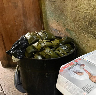 Para los guatemaltecos la tradición es comerlo en Navidad, Año Nuevo y los sábados por la noche; el origen de esta última costumbre no lo encontré ni debajo de las piedras pero no dudo que tenga muchos años de existir ya que “Doña Mari” lleva 25 años de colgar la pelota plástica roja afuera de su hogar, mientras espero mi pedido, el olor inunda las vecindades y entre el sonido del hervor platicamos un poco, en Gerona de la zona 1 capitalina, sus tamales ya se conocen como los mejores del barrio; la venta inicia a las 4 de la tarde todos los sábados, ella prepara los ingredientes desde la noche anterior y comienza a eso de las 11 de la mañana del sábado a preparar y cocinar, más de 150 tamales en ocasiones y gracias a Dios todos se venden, mientras conversamos, llegan a comprarle familias completas e inevitablemente aparecen en mi mente, con nostalgia, recuerdos de las cenas familiares de mi infancia observando la hoja verde de plátano sobre mi plato con el rectángulo de masa, relleno de pollo y cubierto con salsa encima listo para ser devorado, y siempre acompañado de una rodaja de limón y un pan francés. “Doña Mari” empaca mis 3 tamales en papel periódico para conservar el calor, 2 de marrano y 1 de pollo y nos despedimos.