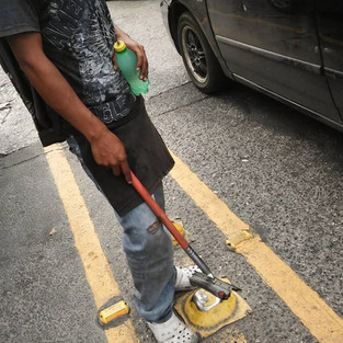 Una camiseta negra “American Eagle”, jeans rotos por desgaste y no por moda, zapatos blancos (ya muy grises) estilo “crocs” porque son cómodos para estar de pie y se secan fácilmente cuando el agua es parte indispensable del día; con la mirada perdida quién sabe dónde, él es Carlos, nombre ficticio porque no me autorizó publicar el real, uno de sus compañeros pasó a mi lado “retándome” para que yo limpiara un vidrio, como cosa rara, mi personalidad impulsiva se contuvo y no me atreví. La conversación continuó con Carlos, una de la más complicadas de desarrollar hasta el momento porque no lograba establecer una conexión; él no es de la capital, no tiene estudios y toda su vida se ha dedicado a vender en los semáforos pero me asegura que lo mejor es limpiar los vidrios delanteros de los carros, lleva 10 años realizando esta tarea, las personas a veces no pagan y se enojan, no comprenden, pero eso no importa porque hay conductores amables que le dan hasta Q5, y me cuenta que reúne hasta Q100 al día, no me quiso decir en qué zona vivía, no es descabellado pensar que no tiene un hogar, respecto a si tiene familia ni siquiera respondió “si o no” solamente se quedó callado viéndome fijamente con confusión, como si nunca alguien externo a su círculo le hubiera hablado.